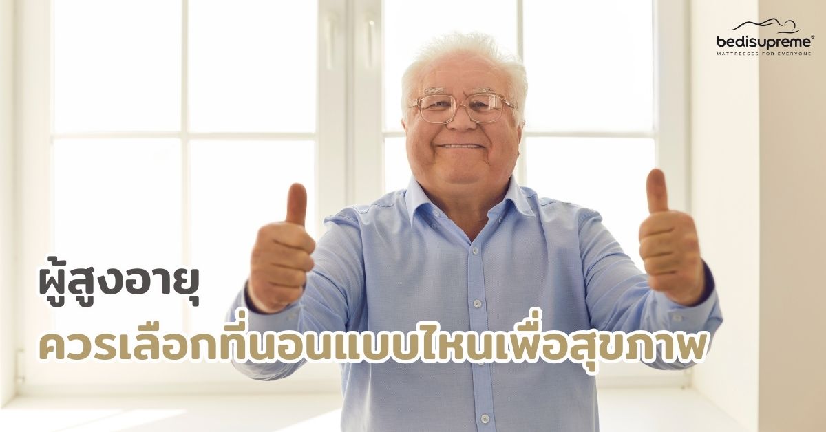 การเลือกที่นอนที่มีคุณสมบัติเหมาะสมจะช่วยให้ผู้สูงอายุนอนหลับได้อย่างมีคุณภาพมากขึ้น Bedisupreme แบรนด์ผู้ผลิตและจำหน่ายที่นอนคุณภาพดีที่มียอดขายเป็นอันดับหนึ่ง มีที่นอนให้เลือกหลากหลายรูปแบบ และสามารถตอบโจทย์วัยผู้สูงอายุได้เป็นอย่างดี สามารถเลือกซื้อที่นอนที่เหมาะสมได้ที่ bedisupreme.com
