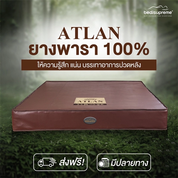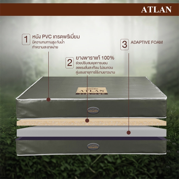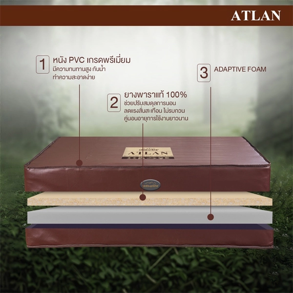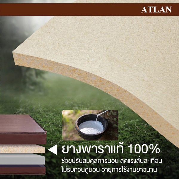 ที่นอนยางพาราแท้ 100% Latex หุ้มด้วยหนัง PVC ป้องกันคราบสกปรก รุ่น ATLAN