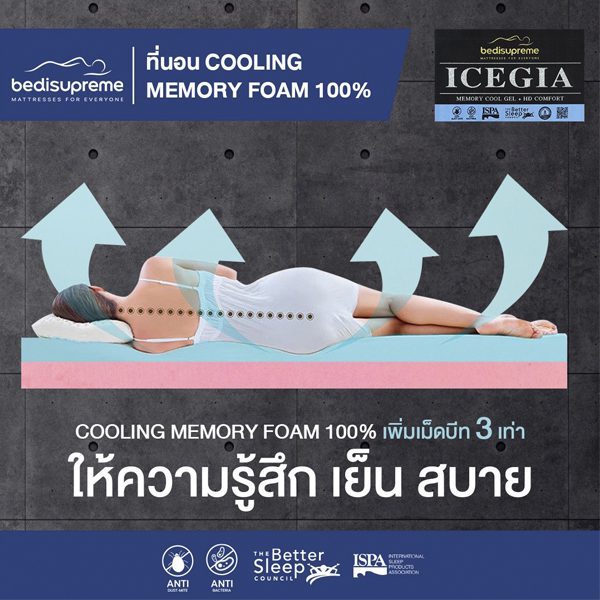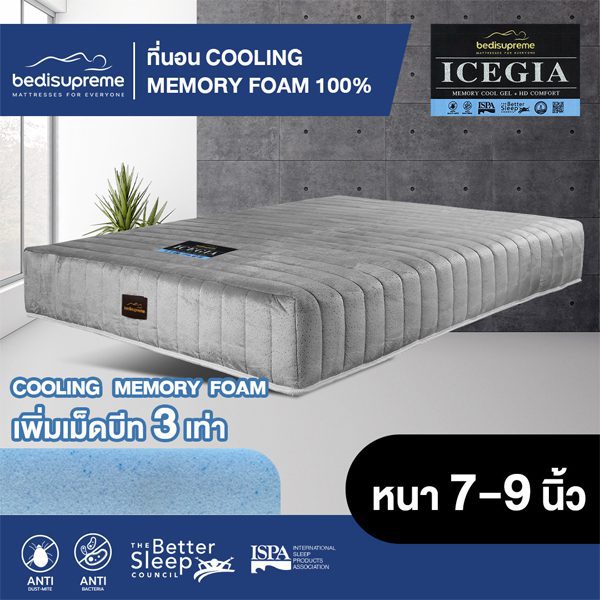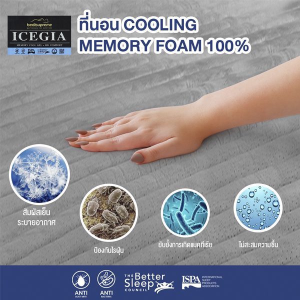 ที่นอน COOLING MEMORY FOAM หุ้มผ้า Cotton Velour กันไรฝุ่น รุ่น ICEGIA