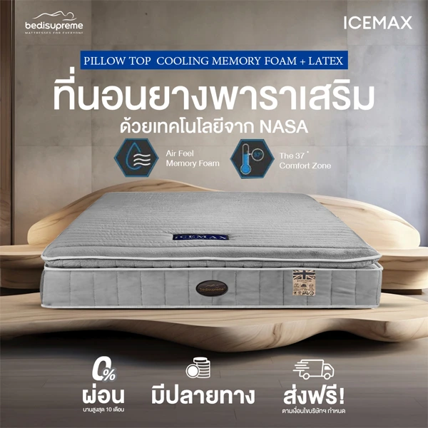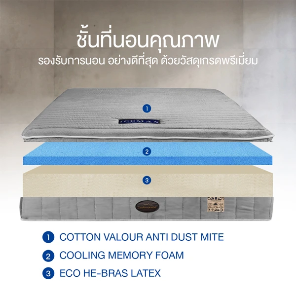 ที่นอนยางพาราเสริม TOP COOLING MEMORY FOAM รุ่น ICEMAX