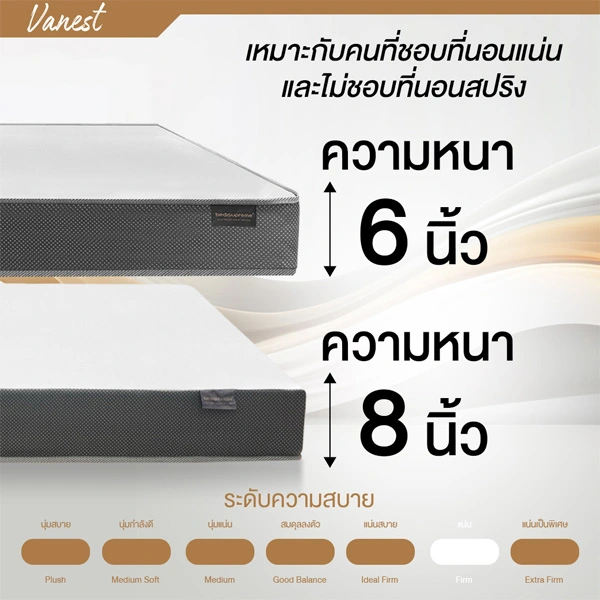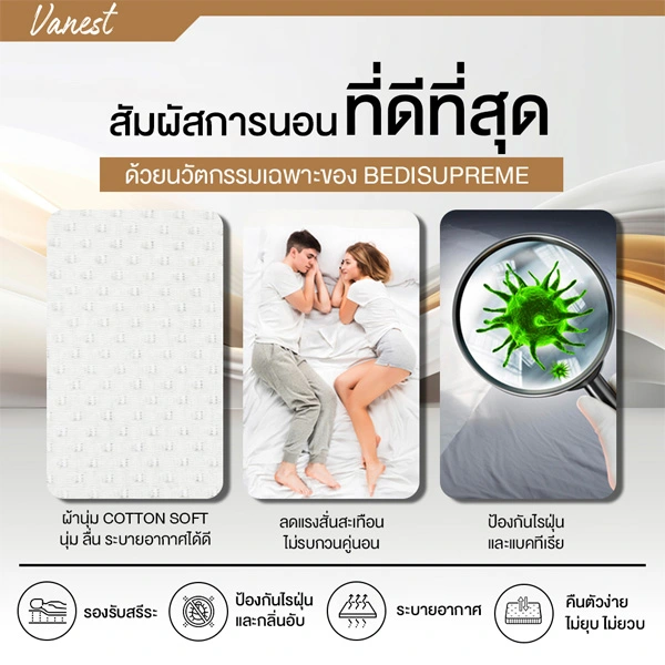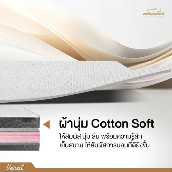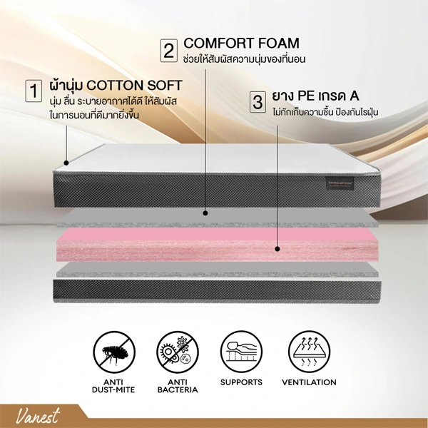 ที่นอนยางPE เสริมฟองน้ำ หุ้มผ้านุ่ม Cotton soft รุ่น Vanest
