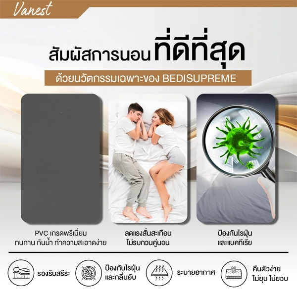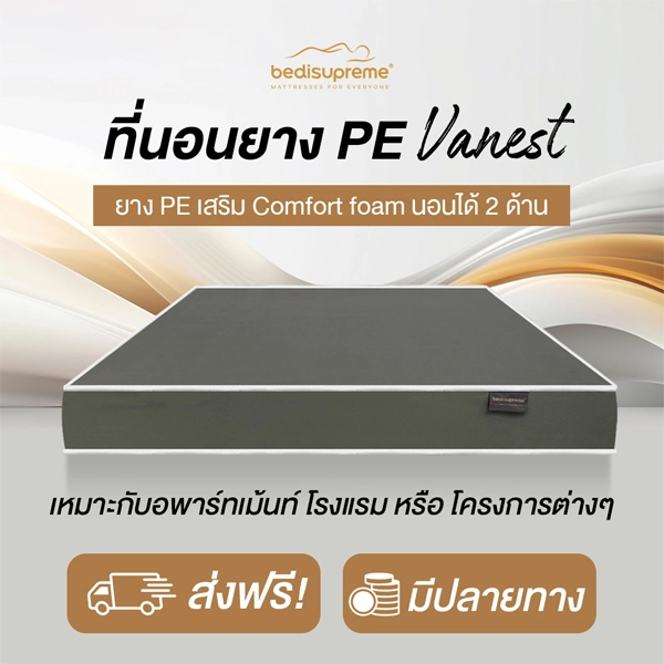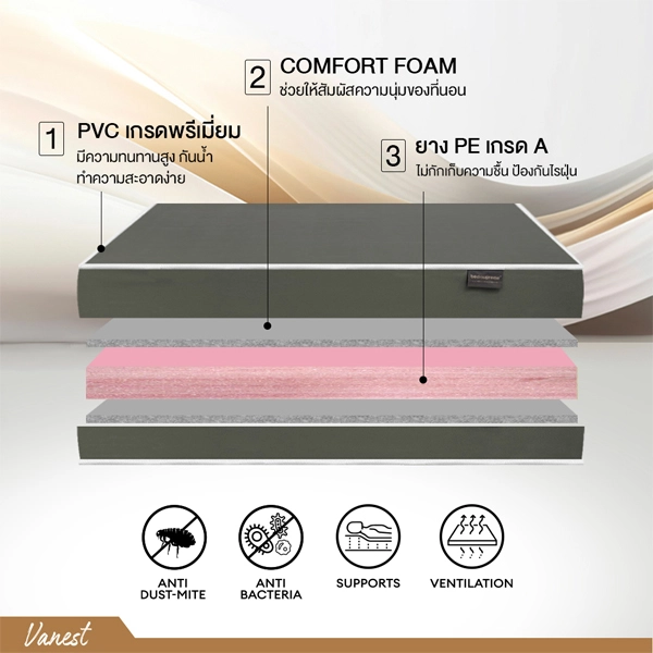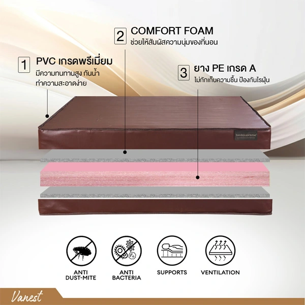ที่นอนยาง PE เสริมฟองน้ำ หุ้มหนังPVC กันน้ำ รุ่น Vanest