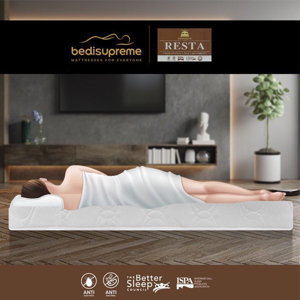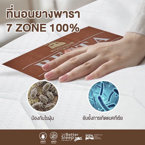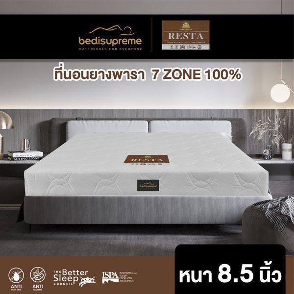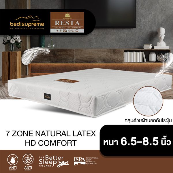 ที่นอนยางพาราแท้ 100% แบบฉีดขึ้นรูป 7 Zone + HD Comfort หุ้มผ้าแจ็คการ์ด กันไรฝุ่น รุ่น RESTA