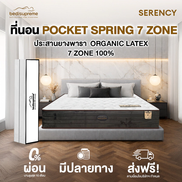 ที่นอนยางพาราแท้ 100% แบบฉีดขึ้นรูป 7 Zone Organic Latex with Pocket Spring 7 zone รุ่น Serency
