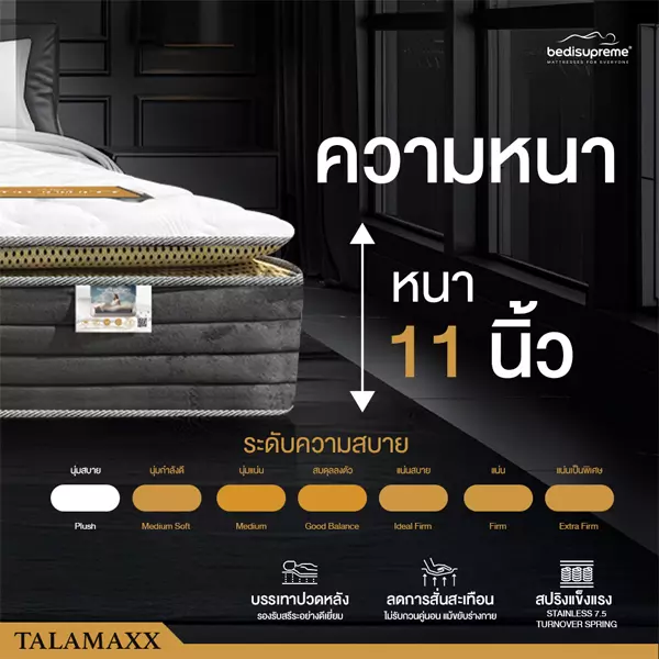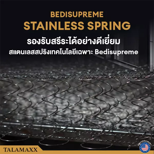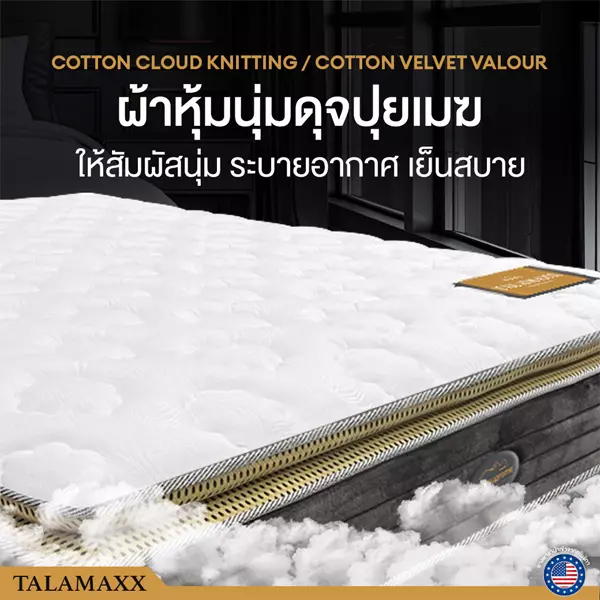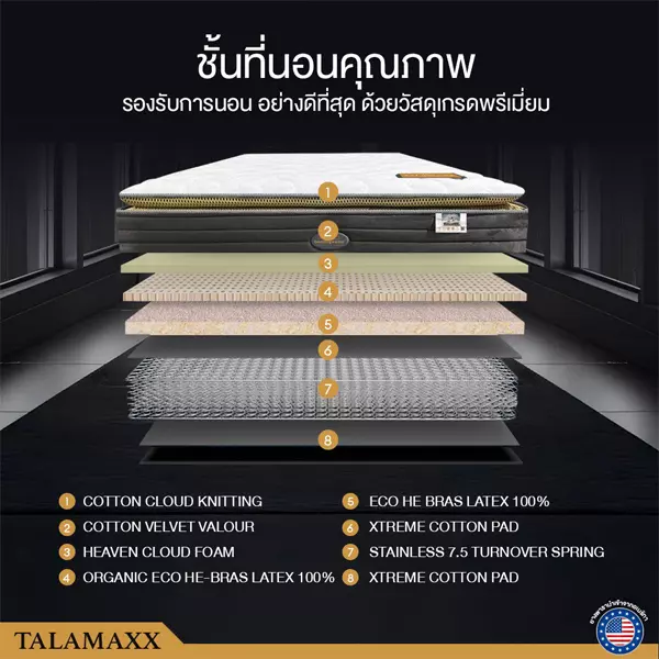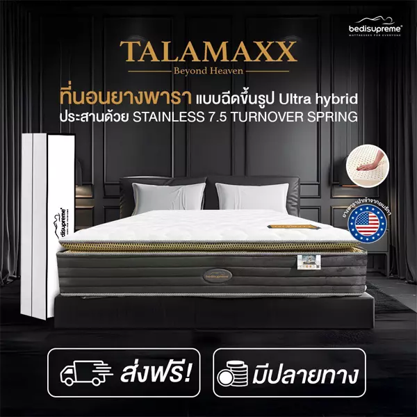 ที่นอนยางพาราแท้100% แบบฉีดขึ้นรูป Ultra hybrid ประสานด้วย STAINLESS 7.5 TURNOVER SPRING รุ่น TALAMAXX