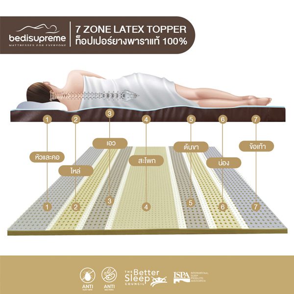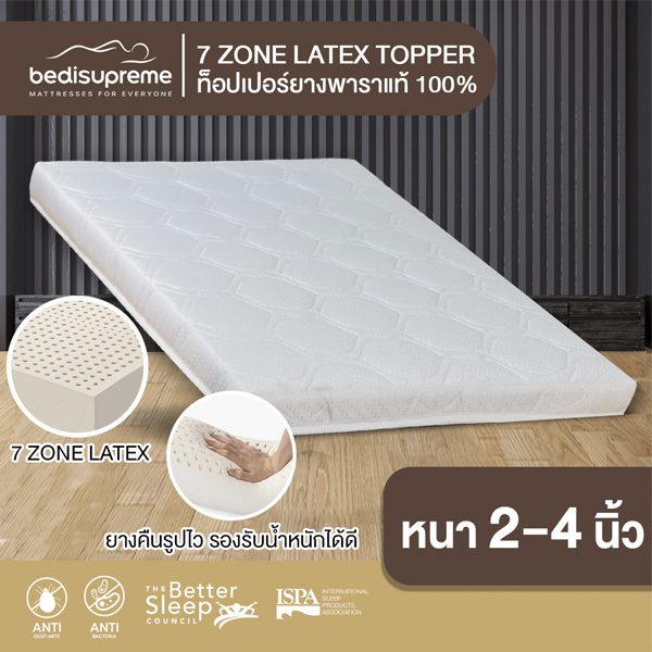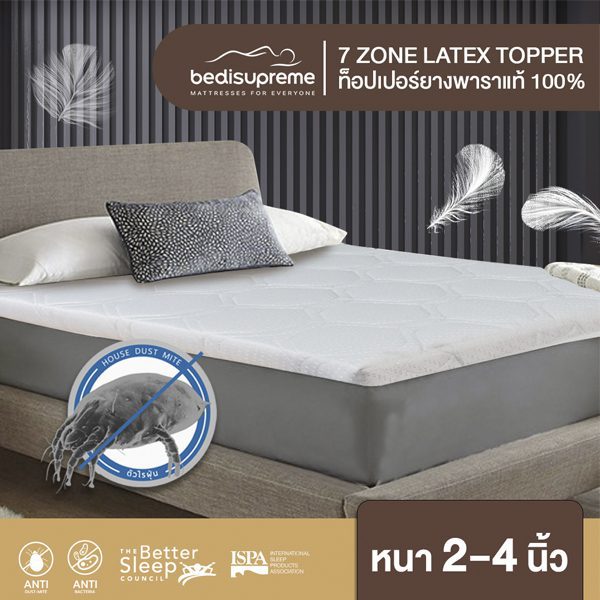ท็อปเปอร์ยางพาราฉีดแท้ 100% ยางพาราธรรมชาติ 7 โซน หุ้มผ้าแจ็คการ์ด กันไรฝุ่น