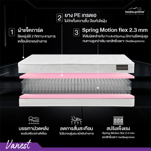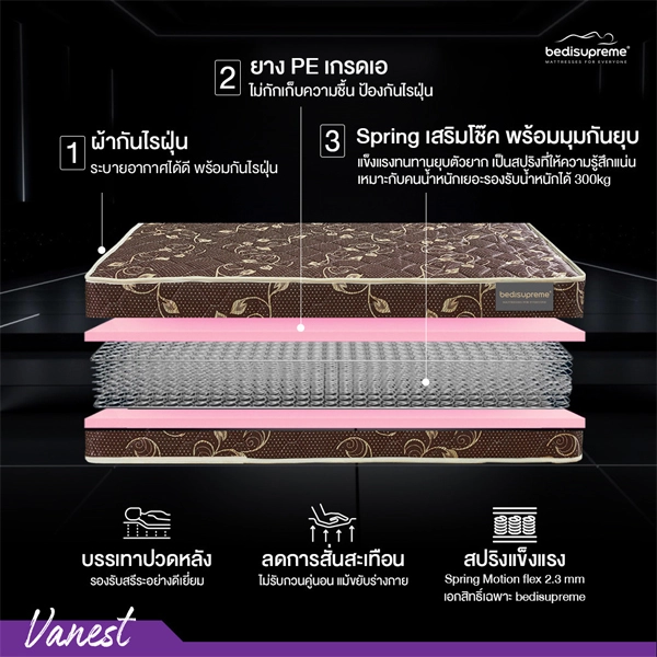 ที่นอนสปริง ระบบ SPRING MOTION FLEX 2.3 รุ่น Vanest