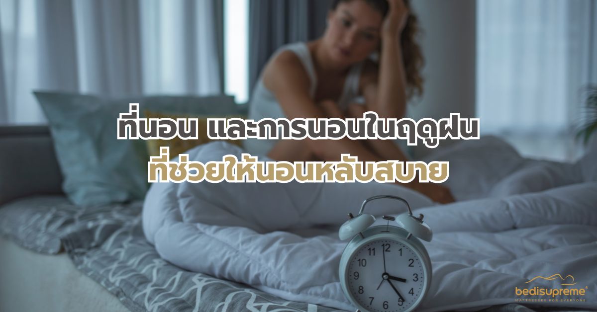 ฤดูฝนมาถึงแล้ว หลายคนเริ่มพบปัญหาการนอนที่ไม่สบาย เพราะอากาศที่ชื้นแฉะ และอุณหภูมิที่เปลี่ยนแปลง ที่นอน และการนอนในฤดูฝน จึงเป็นเรื่องสำคัญที่ต้องให้ความใส่ใจเป็นพิเศษ การเลือกที่นอนที่เหมาะสม และรู้วิธีการดูแลตัวเองในช่วงหน้าฝน จะช่วยให้คุณได้รับการพักผ่อนที่มีคุณภาพ และตื่นขึ้นมาอย่างสดชื่น