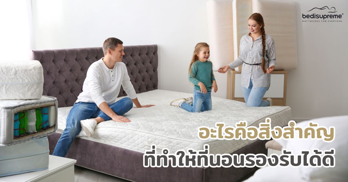 การนอนหลับที่มีคุณภาพเป็นสิ่งสำคัญต่อสุขภาพ และความเป็นอยู่ที่ดี และที่นอนที่รองรับร่างกายได้ดีเป็นปัจจัยสำคัญในการได้รับการพักผ่อนที่ดี แล้วทุกคนเคยส่งสัยหรือไม่ว่า อะไรบ้างคือสิ่งสำคัญที่ทำให้ที่นอนกลายเป็นที่นอนที่รองรับได้ดี